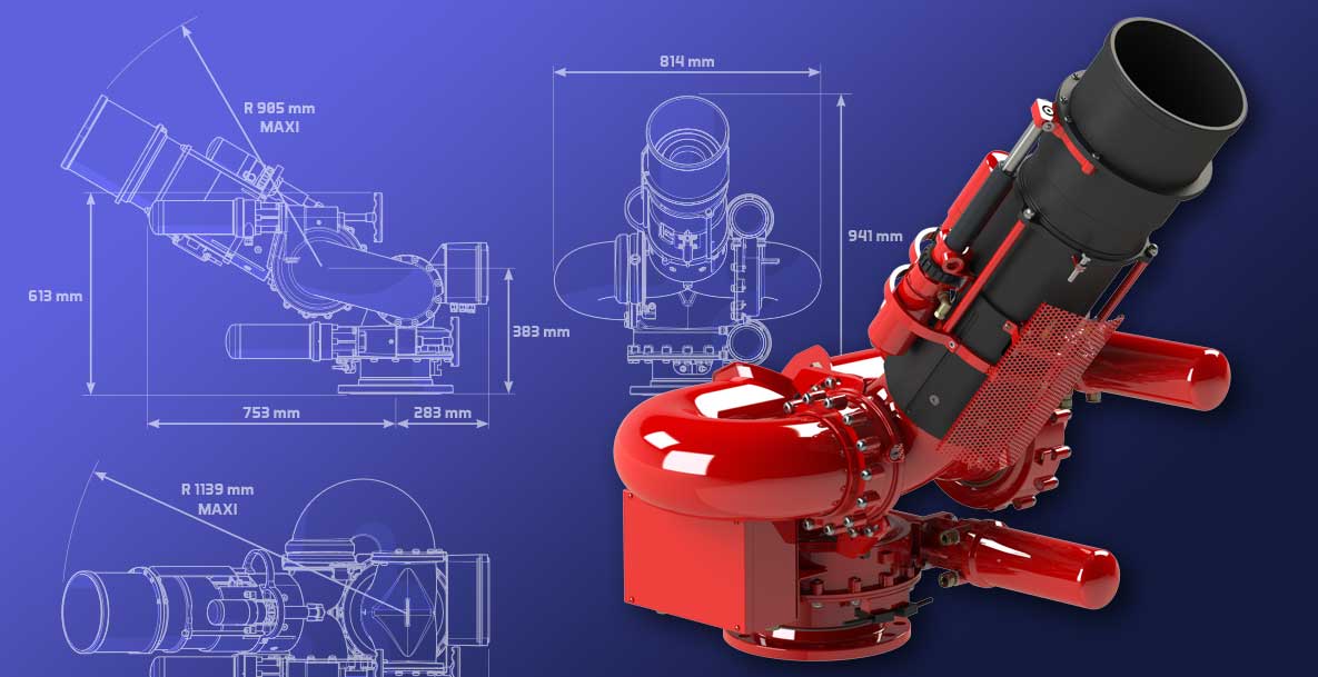 The main advantage of these monitors is the inlet pressure: only 10 bar for a range up to 140 meters. In order to obtain these results, these innovations required two years of work, in particular in computer simulation in order to be operational with a pressure of only 10 bar whereas the products of the competition require much more pressure to obtain similar results.
